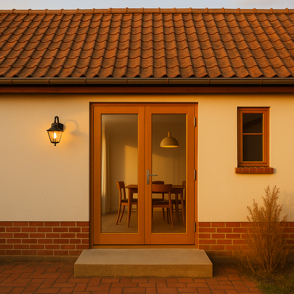 Tänk också på materialet. Trä ger ett naturligt utseende, medan trä/aluminium eller PVC kan vara mer underhållsfria lösningar. Glöm inte att tänka på dörrens öppningsriktning, eftersom det kan avgöra hur utrymmet inuti utnyttjas. Kom också ihåg att du har möjlighet att lägga till spröjs eller specialfärger för en personlig touch.